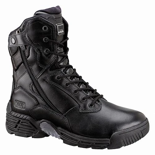 La Magnum Stealth Force 8.0 double side zip cuir WP est noire et existe de la pointure 35 à 48. Une chaussure en taille 42 pèse 650 g.