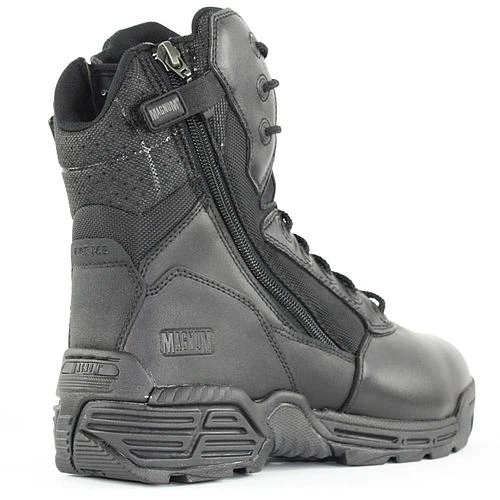 La Magnum Stealth Force 8.0 double side zip est noire et existe de la pointure 35 à 48. Une chaussure en taille 42 pèse 695 g.