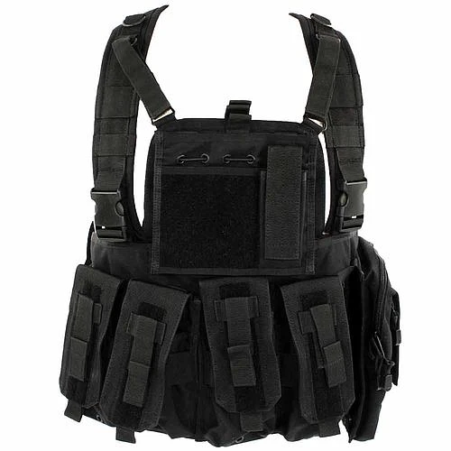Voici le Gilet Chest-rig Recon proposé par la marque Defcon 5. Conçu en Nylon 1000 Deniers, elle est équipé d’une multitude de passants MOLLE. Réglable en hauteur mais aussi sur les flancs, ce gilet s’adaptera à toutes les morphologies. Renforts amovibles, anneaux métalliques permettant la fixation d’une sangle ISTC, le gilet est également doté d’une poignée d’extraction. Vous souhaitez transformer ce gilet en chest ? Rien de plus simple, la plaque au niveau du dos est entièrement amovible. Plusieures pochettes sont également livrée avec ce gilet chest rig: pochette pour chargeur de PA, 1 pochette porte radio, 1 porte chargeur double pour PA, 1 petite pochette fermée par un zip et une poche multifonctions. Enfin, il vous est tout à fait possible de positionner une plaque de protection ballistique sur le devant du gilet. Ce gilet Chest Rig conviendra parfaitement à tous les combattants exigeants du 21ème siècle par sa modularité et ses performances.