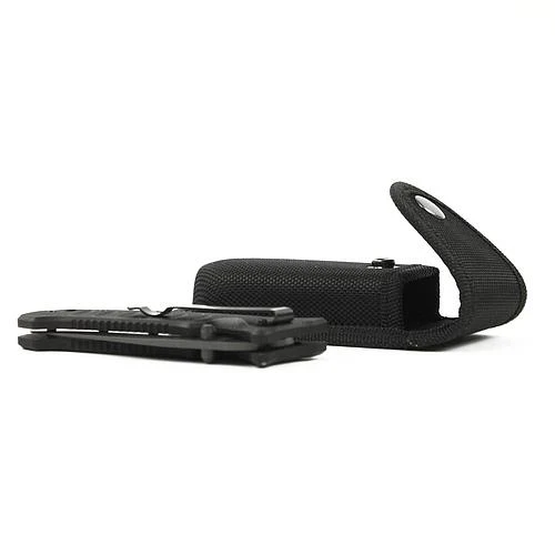 Couteau ouvrant avec cran de sureté et avec système à ressorts pour une ouverture à une main. Lame à cran en acier inoxydable A440 avec finition Titane. Manche ergonomique avec un clip ceinture et un trou dans le manche pour y fixer une accroche. Fournit avec une housse protectrice attachable à la ceinture.