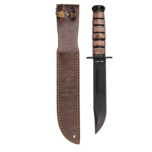Couteau de combat USMC (US Marines Corp) est un couteau de la marine américaine. Sa lame de type bowie est en acier inoxydable et mesure 18cm, le manche quant à lui mesure 13cm. Le couteau est vendu avec un étui en cuir avec le logo des marines.