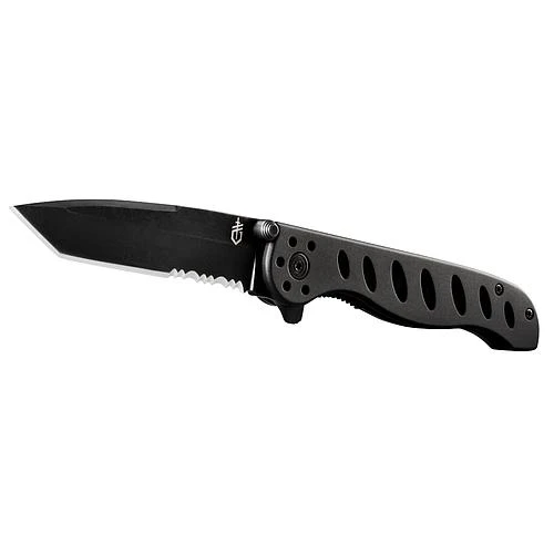 Couteau Gerber Evo Large avec lame Tanto de 9cm en acier 7Cr17MoV. Matériau du manche: AL 6061-T6. Poids: 85g. Longueur totale: 21cm.