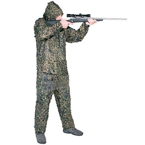 Le système de camouflage Ghillie Jackal Ultra Light Woodland est une version plus légère de la Ghille Suit Jackal, en couleur camouflage Woodland. Il est fabriqué en 100% polyester. Il a une structure 3-D. Il est silencieux et ne produit aucun bruit de froissement.