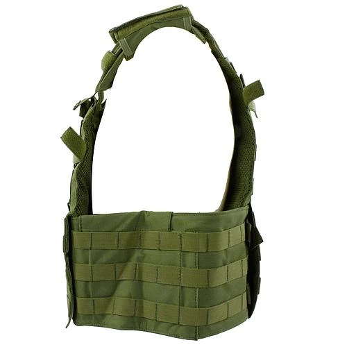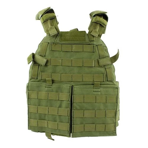 Gilet tactique fabriqué en nylon 600D waterproof. Il est entièrement équipé du système Molle, ce qui vous permettra de lui rajouter des poches et autres accessoires à votre convenance. Le gilet est prévu pour accueillir 4 plaques balistiques : 1 devant, 1 derrière et 1 de chaque côté. Taille unique mais réglable. Poids : 1625g. Couleur: Vert olive.