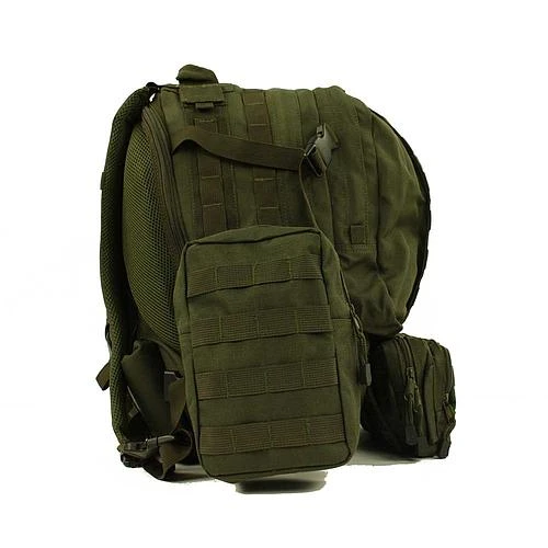 Ce pack sac à dos tactical est composé de 5 éléments: un sac à dos, 3 poches à attacher au sac ainsi que d’une poche d’hydratation.