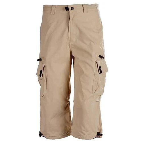 Pantalon 3/4 ou Bermuda beige, il comporte des élastiques sur le bas pour serrer selon votre convenance. De larges poches sont présentes sur les côtés des deux jambes pour pouvoir y mettre tout ce que vous désirez.