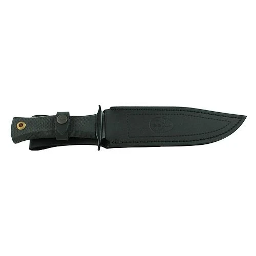 Poignard muela mirage avec lame chromé. Poignard de très bonne bonne qualité Made in Spane. Le poignard est livré avec un fourreau en cuir noir avec passant ceinture. Le manche est équipé d’un revêtement grip pour offrir une meilleur adhérence. La lame possède une partie lisse et une partir scie. Lame Bowie en acier inox.