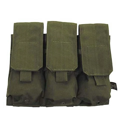 Porte chargeur 3 poches 100% nylon avec système de fixation MOLLE et fermeture avec bande auto agrippante. Dimensions: 17 x 8.5 x 5 cm